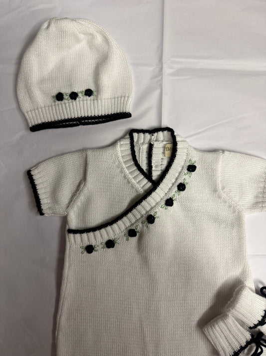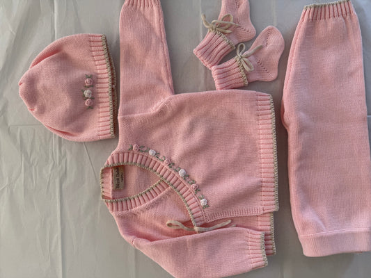 Set Neonato 4 Pezzi in Maglia di Cotone - Dettagli Floreali